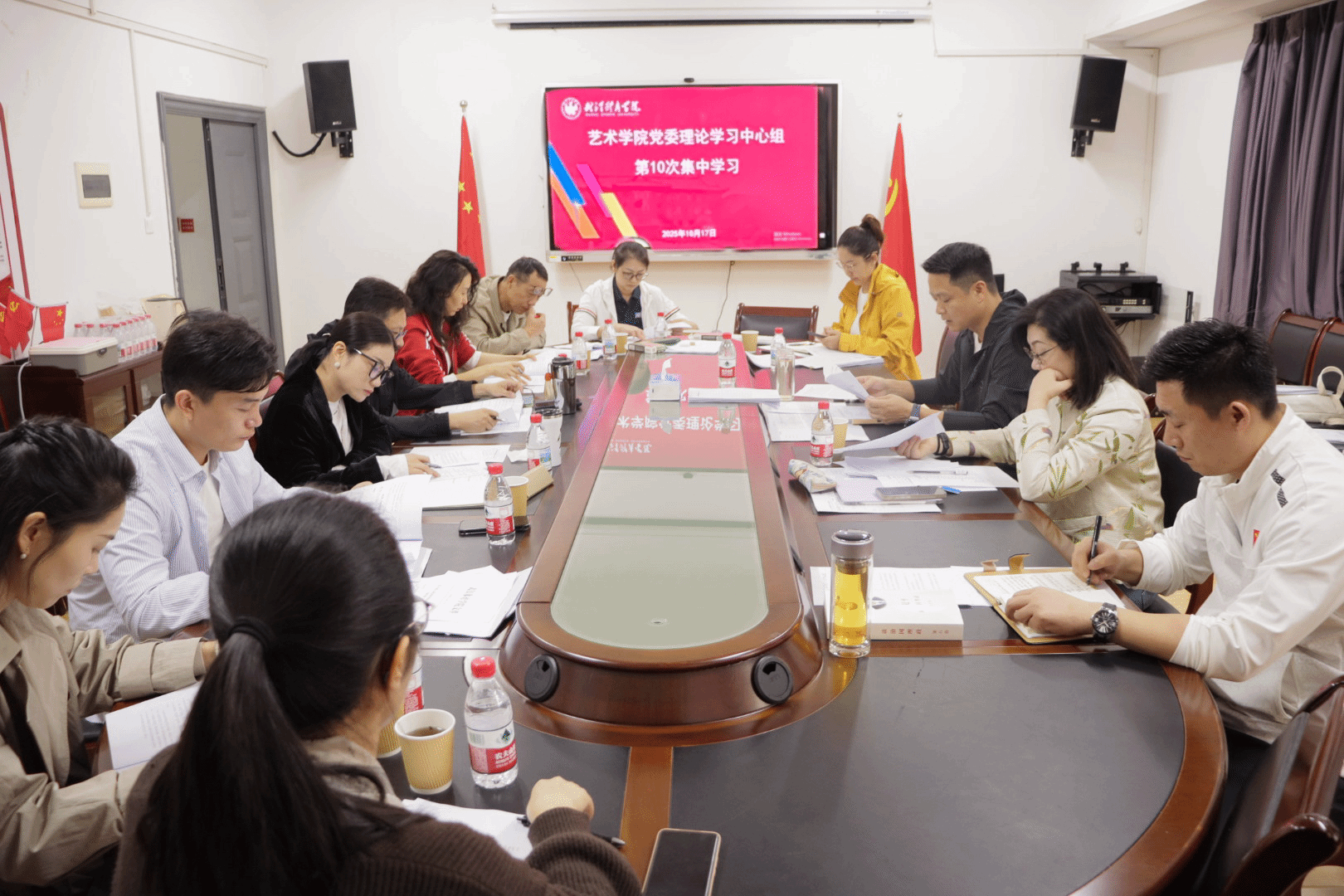 新闻网讯(通讯员黄水平)10月17日上午,艺术学院在学院会议室举行党委理论学习中心组(扩大)第10次集中学习,学院班子成员、各教研室书记、主任及办公室工作人员参加学习,艺术学院党委书记陈载阳主持会议。