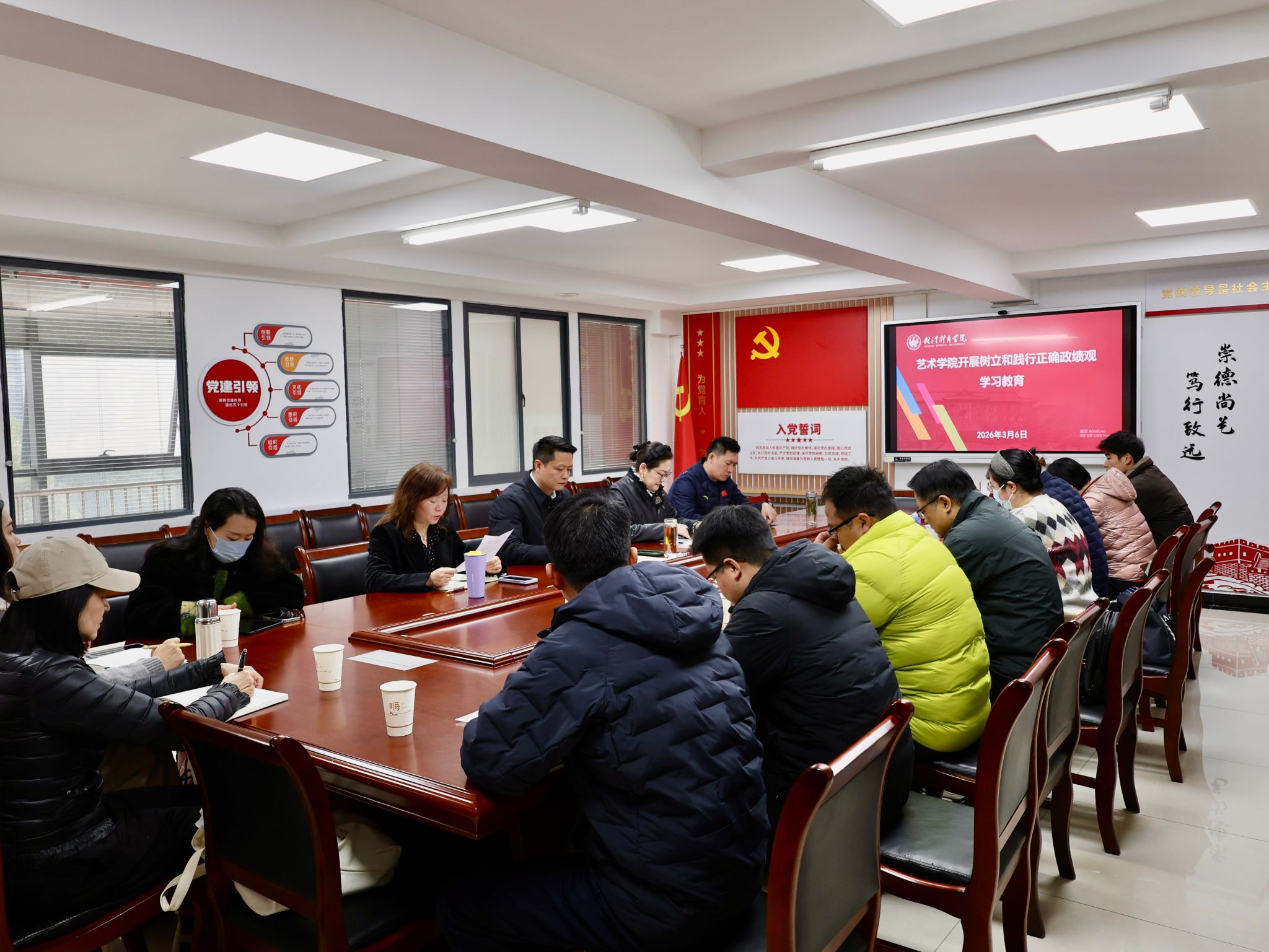 新闻网讯(通讯员刘煜、姬鑫磊)3月6日,艺术学院开展树立和践行正确政绩观学习教育专题学习,党委书记陈载阳主持会议并讲话,学院领导班子成员、党委委员、教研室负责人、各党支部书记及辅导员参加会议。