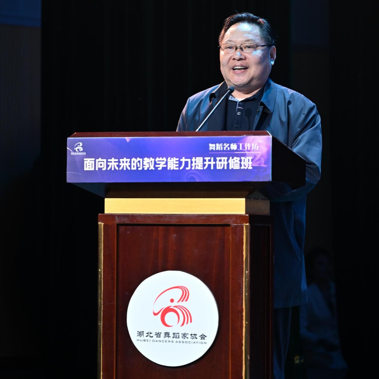湖北省文学艺术界联合会党组成员、副主席马尚云在致辞中指出,本次研修班紧扣教育强国建设部署,落实《中国教育现代化2035》战略要求,对提升湖北舞蹈人才素养、增强行业适配力、推动艺术与科技文化融合意义重大。同时对全体学员提出三点期望:一要坚守初心,锚定育人方向,以人民为中心,将立德树人融入教学,做技艺传授者、文化传承者、美的传播者;二要潜心钻研,提升专业素养,以空杯心态深学细悟,聚焦教学创新与技术融合,将前沿理念转化为实践能力;三要勇于担当,赋能事业发展,将所学带回一线发挥示范作用,创作出更多彰显时代精神与荆楚韵味的作品。