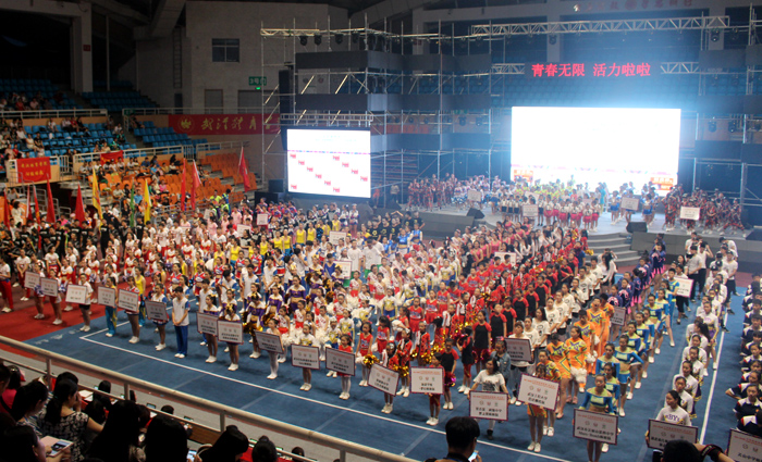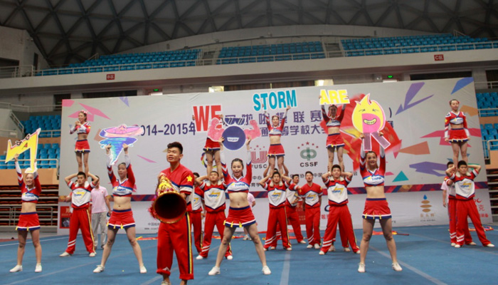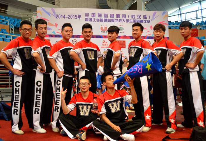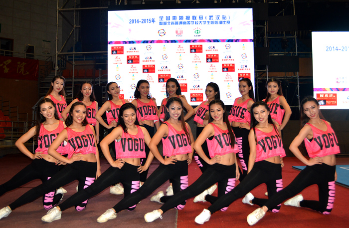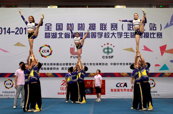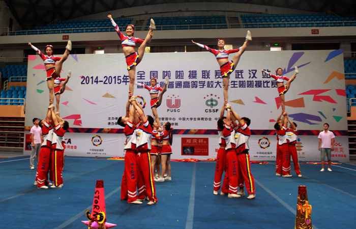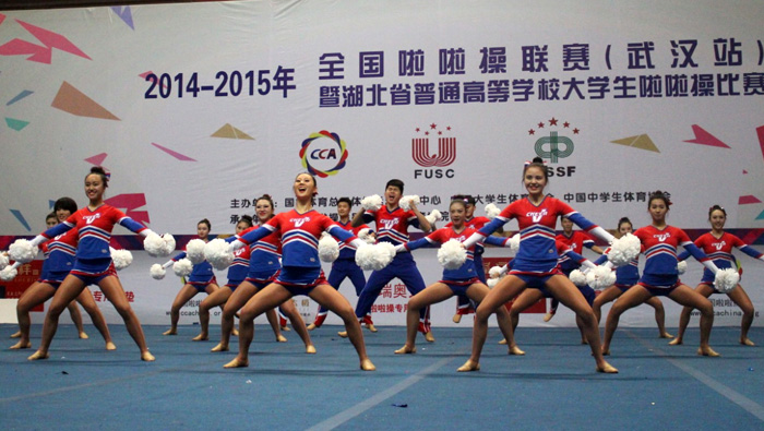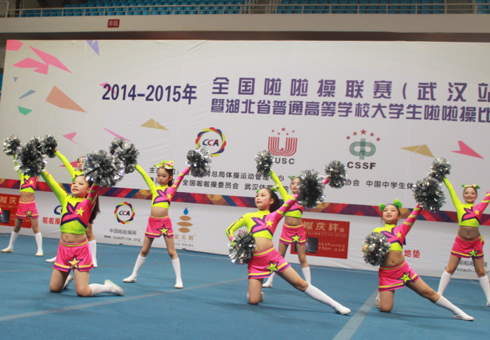 由国家体育总局体操运动管理中心、教育部大体协、中体协主办,全国啦啦操委员会与武汉体育学院承办的全国啦啦操联赛(武汉站)暨湖北省普通高等学校大学生啦啦操比赛于2015年5月9日晚7时在武汉体育学院体育馆正式开始,出席开幕式的领导有湖北省教育厅体艺卫处杨跃处长、全国啦啦操委员会李育林副主任、洪山区教育局胡明理副局长、洪山区文体局李海涛副局长,艺术学院魏旭波院长致开幕词。大赛历经两天,共分三场比赛。来自广东、山东、江西、河南、湖北等省市70个单位的2539名运动员进行了含幼儿组、小学组、中学组、大学组、俱乐部组的79个单项进行精彩角逐,参赛人员众多,比赛规模宏大。