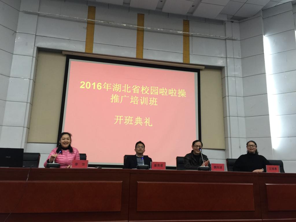 为推动我省学校啦啦操运动的发展,提高体育教师从事啦啦操教学和训练的业务水平,丰富校园体育活动内容, 2016 年11月10日-13日湖北省校园啦啦操推广培训班在武汉体育学院顺利开班,本次培训工作由湖北省大学生体育协会、湖北省中小学体育艺术类运动项目研究指导中心主办,湖北省大学生体育协会体育舞蹈分会和武汉体育学院艺术学院承办。