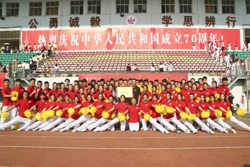 9月27日上午,武汉体育学院为庆祝新中国成立70周年,举办了“庆国庆,迎军运”大学生健身操比赛。来自我校12个学院的队伍分别用精彩纷呈的表演向祖国献礼,艺术学院更是精神抖擞、乘风破浪勇夺特等奖。