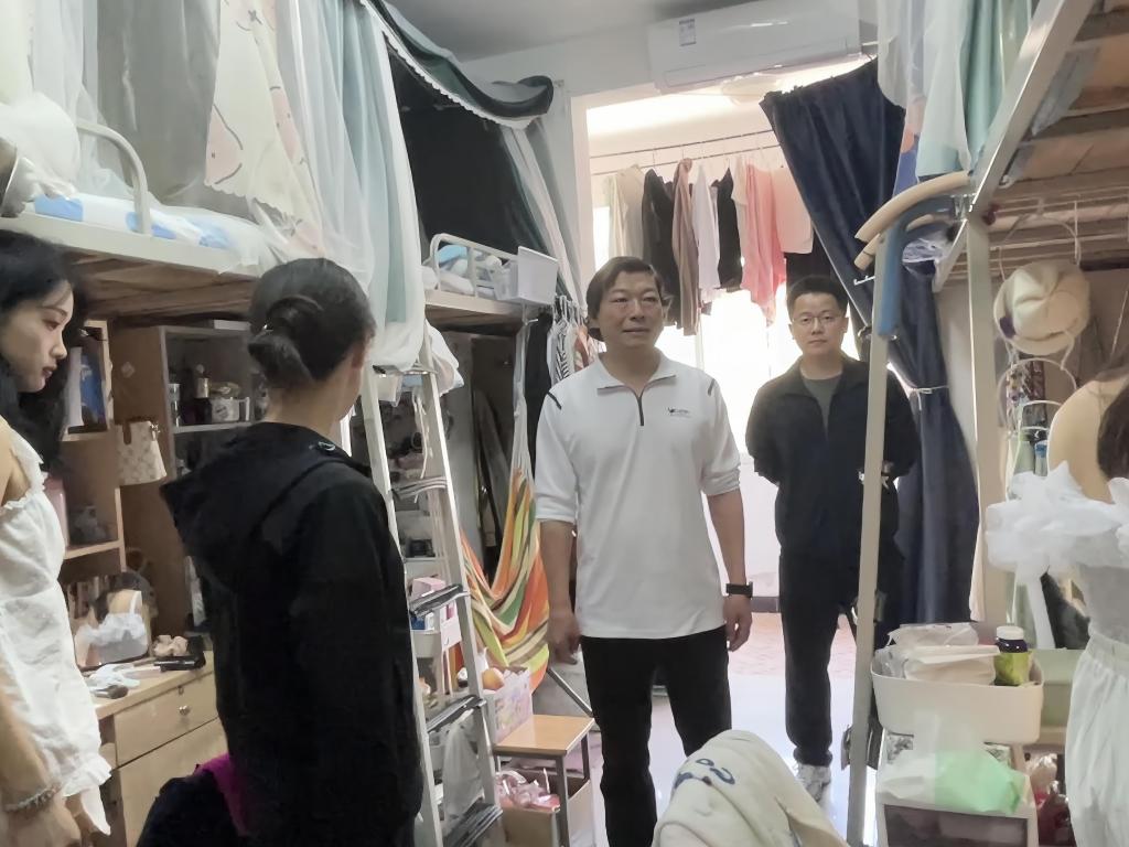 来到学生公寓,童书记提醒同学们注意寝室卫生,养成勤开窗、多通风的好习惯,切实提高防火防盗意识,叮嘱同学们遵守疫情防控规定,并对干净卫生、布局简洁大方的寝室提出表扬。