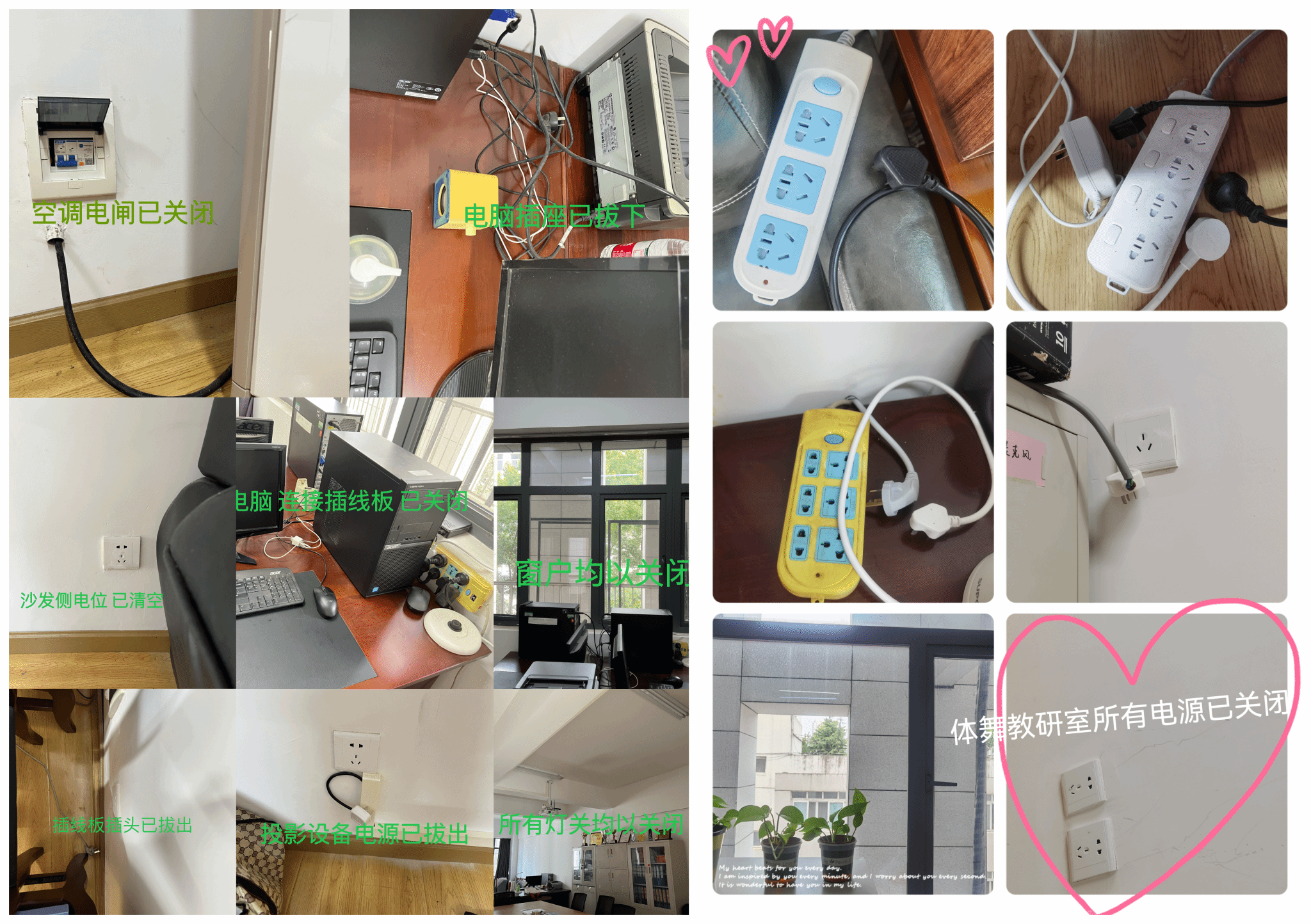 检查组先后对学院各年级宿舍、各教研室教学场地等地的安全隐患进行了一一排查,重点对断电、门窗关闭等工作进行常规检查,有效预防安全事故的发生。学院办公室及各教研室均已完成自查,对所有电源进行检查及关闭,同时在工作群内提醒其他老师如有假期办公需求,注意离开时关闭电源及门窗。