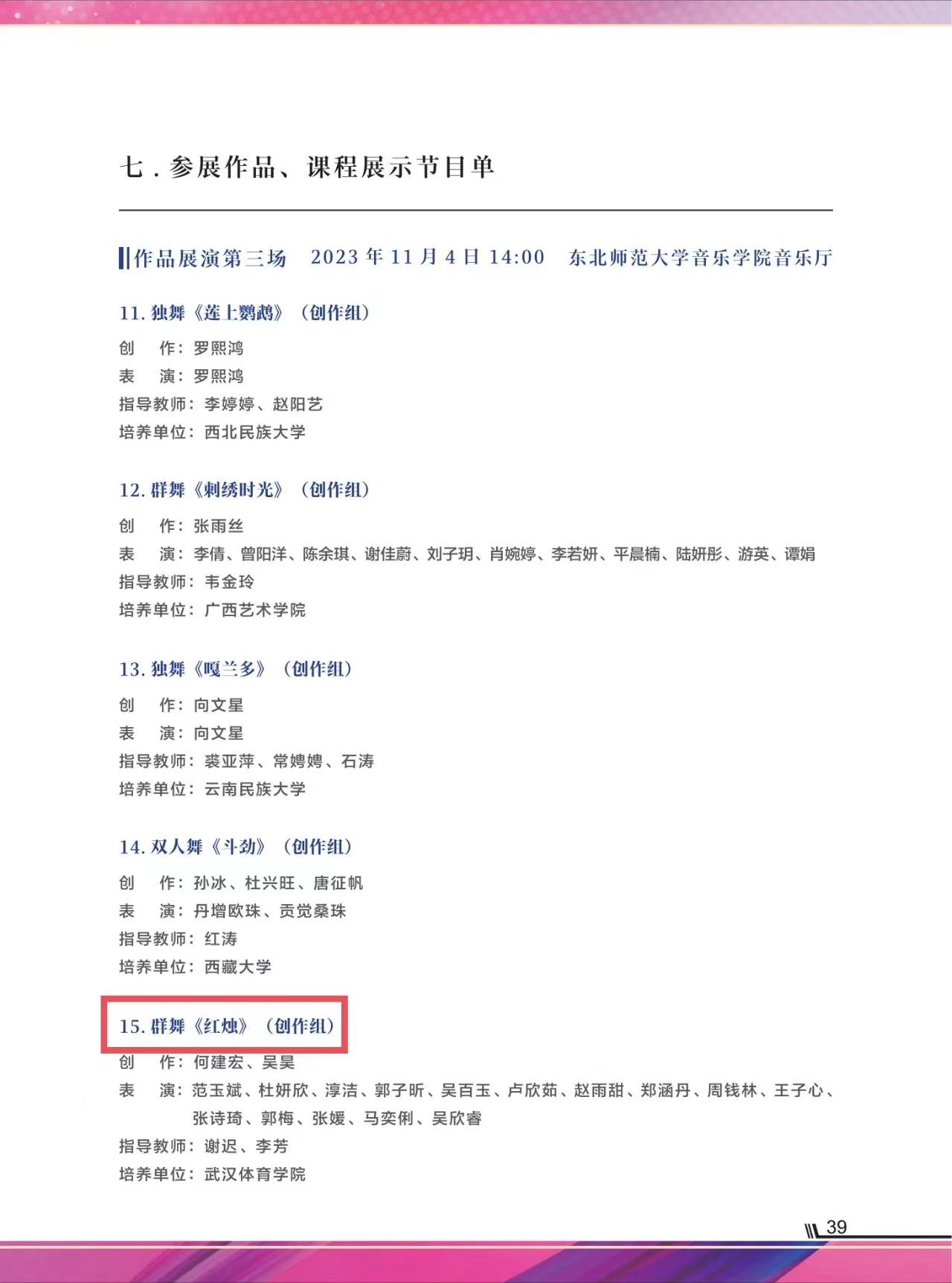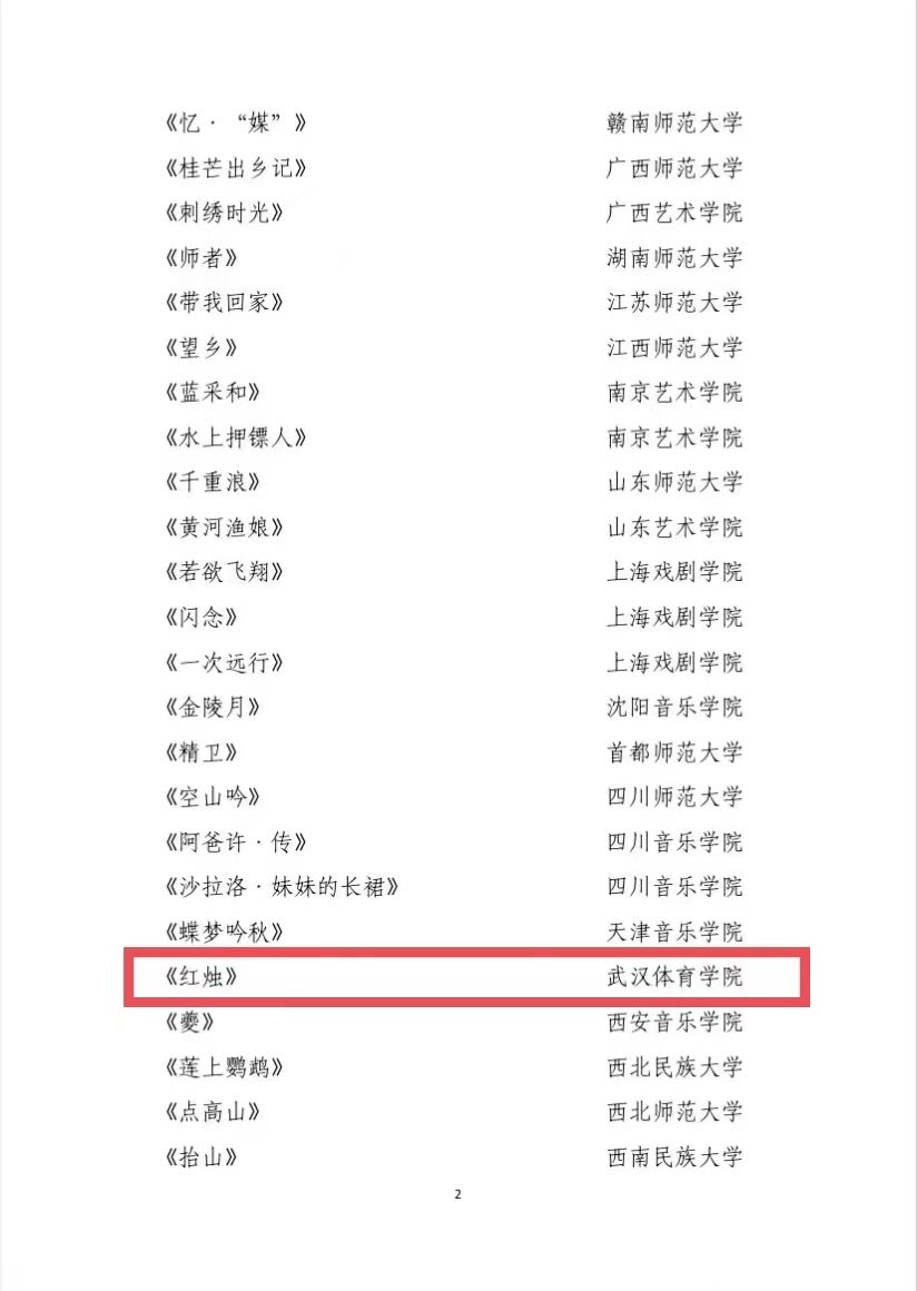 经评审委员会评选,共产生 72个作品、25 堂课程入围现场展演。武汉体育学院艺术学院创作舞蹈作品《红烛》,成功入围本次展演活动。