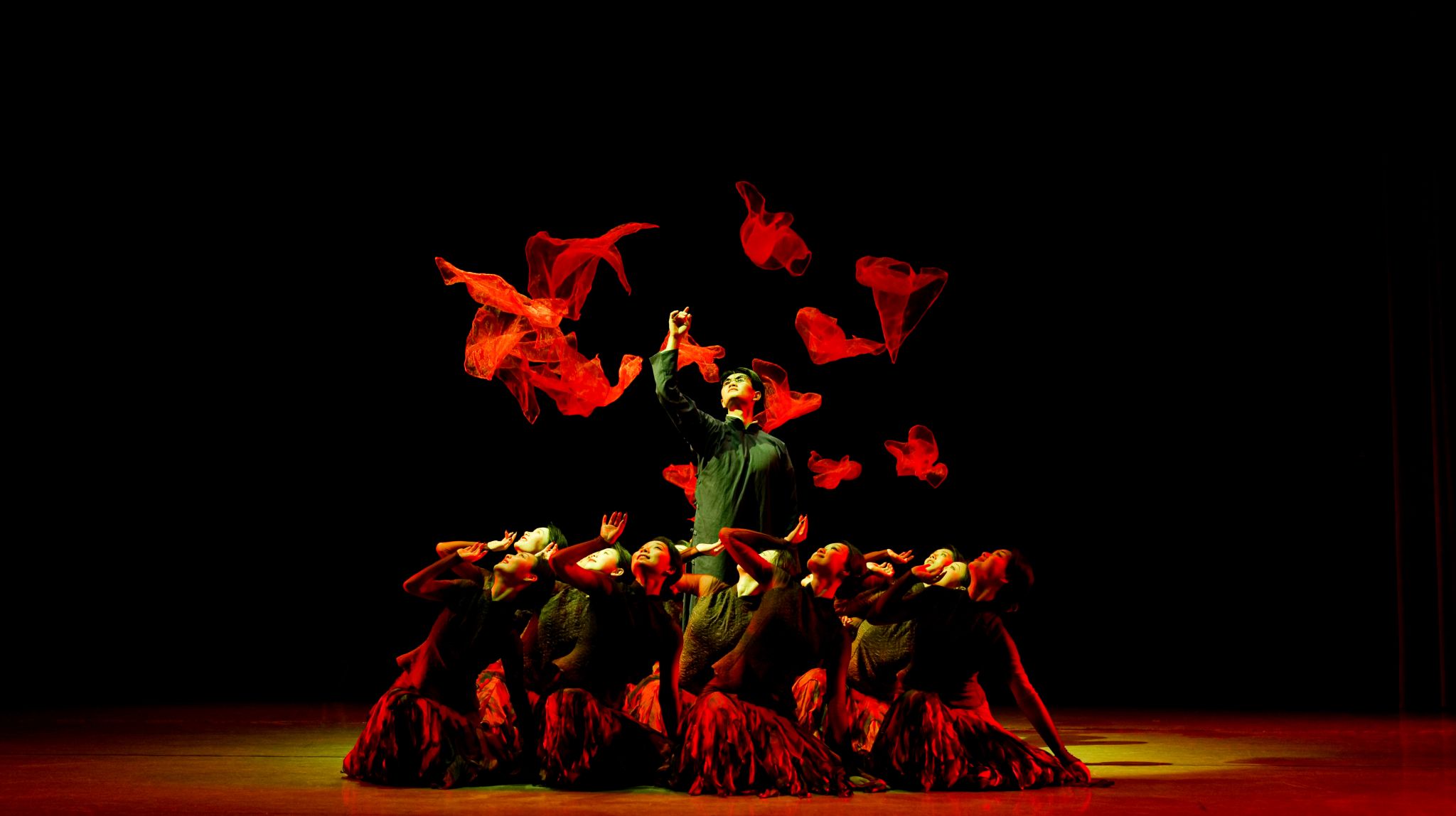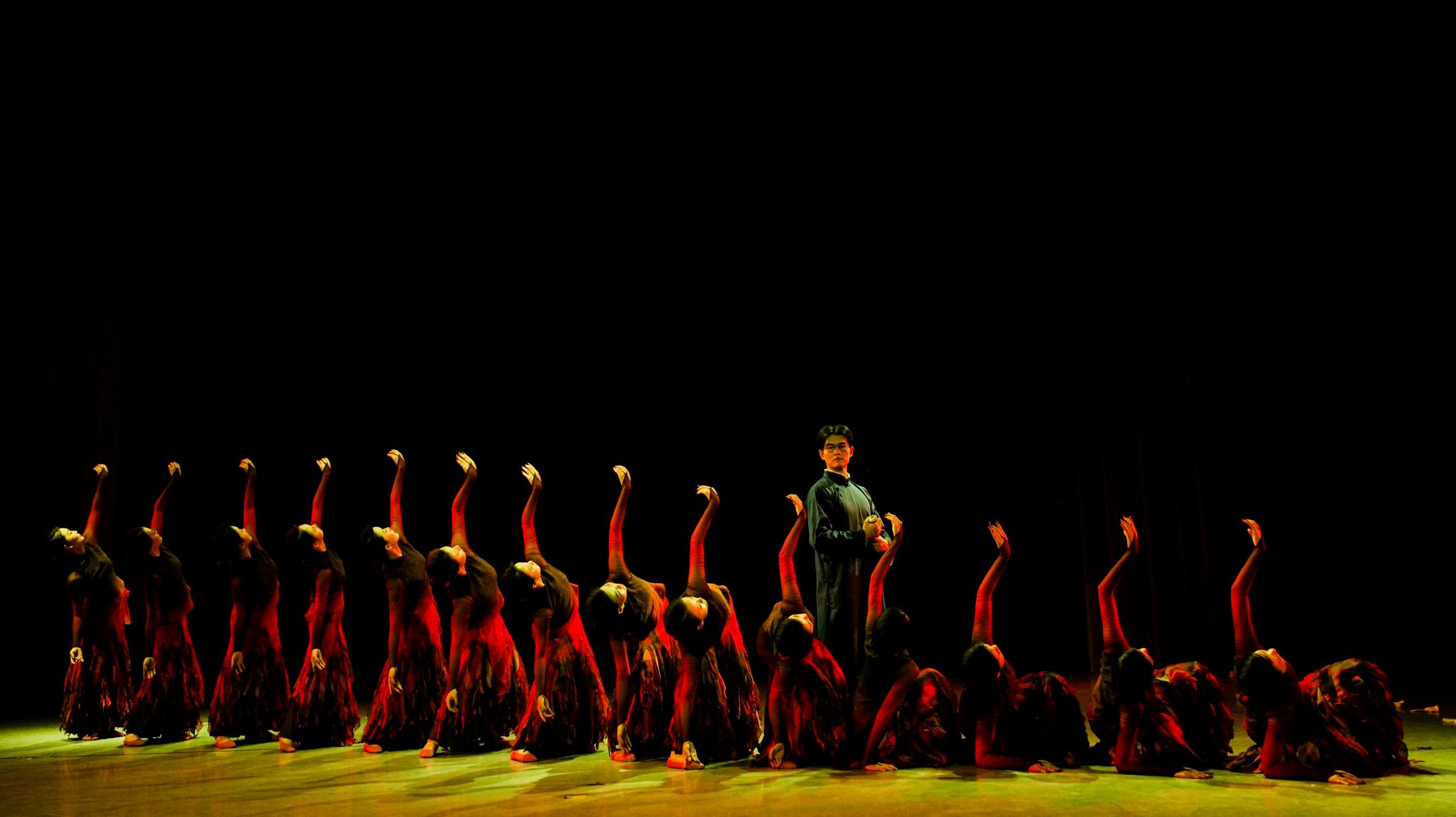 闻一多在《红烛》中写道“红烛啊!莫问收获,但问耕耘。”他把青春奉献给祖国,最终为民主自由献身来践行这一宣言。作品深入刻画闻一多民族英雄的人物形象,以群舞塑造“红烛”意象。红烛燃烧,在灯火阑珊处点亮光明与希望,熊熊火焰,聚成燎原的烈火,指引前进的方向、点燃生命之光。