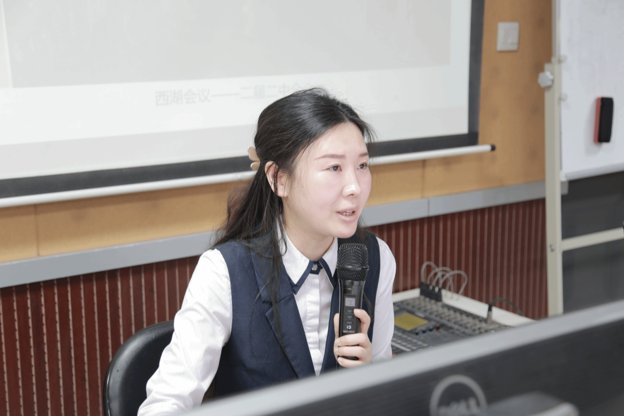 专题辅导报告会上,董律老师以党的新民主主义革命时期为脉络,详细解读了建党初期和大革命时期、土地革命时期、抗日战争时期以及解放战争时期的历史。她结合具体的历史事件和人物,深入剖析了中国共产党在各个历史时期所起到的关键作用,深刻阐释了历史为何选择中国共产党。董律老师的讲解既严谨又生动,使在场的党员教师们深受启发。