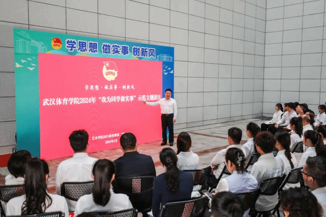 新闻网讯(通讯员姬鑫磊)为进一步深入学习贯彻习近平总书记关于青年工作的重要思想,把握时代主题,牢记服务宗旨,当好桥梁纽带,通过互学互鉴互促,提高团支部服务同学的能力,助力武体青年学生成长成才,4月28日下午,武汉体育学院艺术学院2021级体舞第二团支部开展“学思想·做实事·树新风‘我为同学做实事’”示范主题团日。校党委书记陈继平,校党委常委、副校长潘高峰受邀参加。