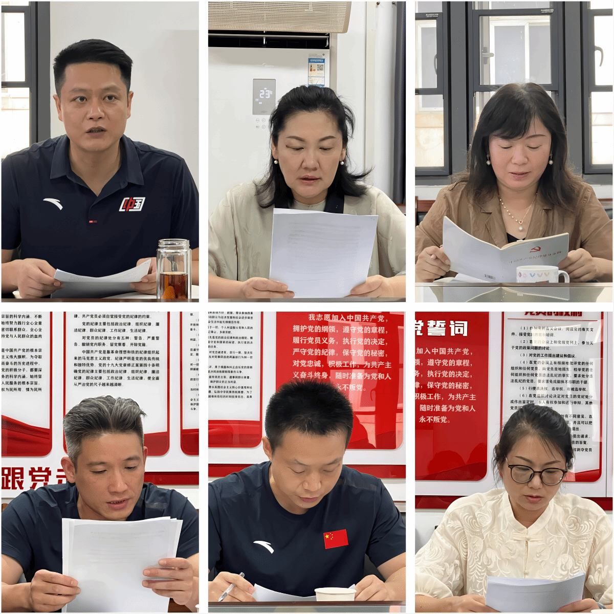 陈载阳领学习近平总书记重要文章《开创我国高质量发展新局面》《新时代新征程中国共产党的使命任务》;李芳领学习近平总书记主持召开中央全面深化改革委员会第五次会议上的重要讲话精神,习近平总书记在中共中央政治局第十五次集体学习时的重要讲话精神;赵露娜领学《中国共产党纪律处分条例》第二编总则第七章,《中国共产党简史》第六章;温在泼领学习近平总书记对防汛抗旱工作作出的重要指示精神,习近平总书记在青海、宁夏考察调研时的重要讲话精神;任克领学习近平总书记在全国科技大会、国家科学技术奖励大会、两院院士大会上的重要讲话精神,习近平总书记关于家庭家教家风建设的重要论述。王操惠围绕习近平总书记关于全面加强党的纪律建设的重要论述做学习交流发言。