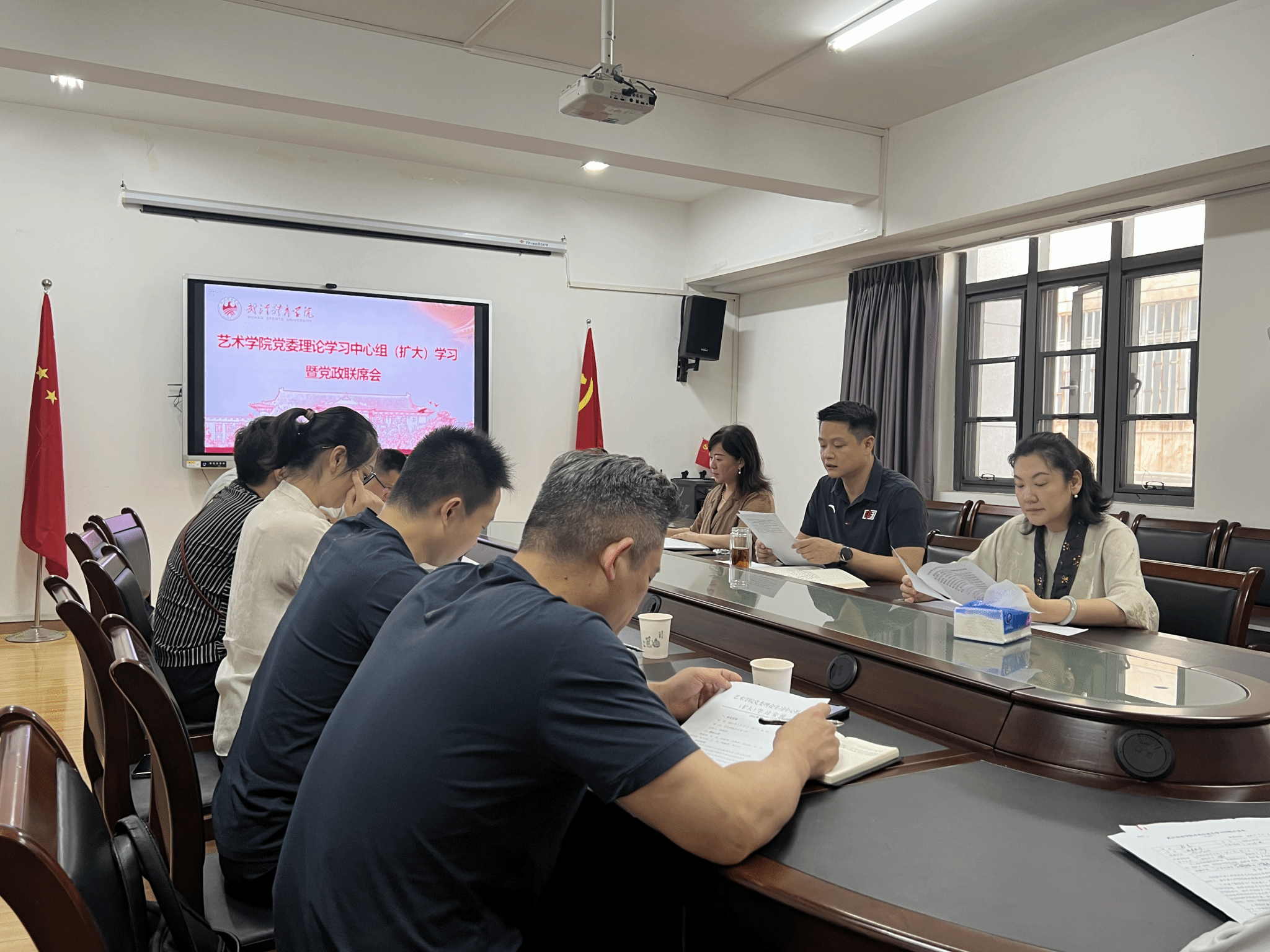 新闻网讯(通讯员黄水平)7月17日上午,艺术学院召开党委理论学习中心组(扩大)第7次集中学习会议,专题研学习近平总书记关于全面加强党的纪律建设的重要论述,学习《中国共产党简史》《中国共产党纪律处分条例》部分章节等内容。党委书记陈载阳主持会议,学院班子成员、党委委员、辅导员参加学习。