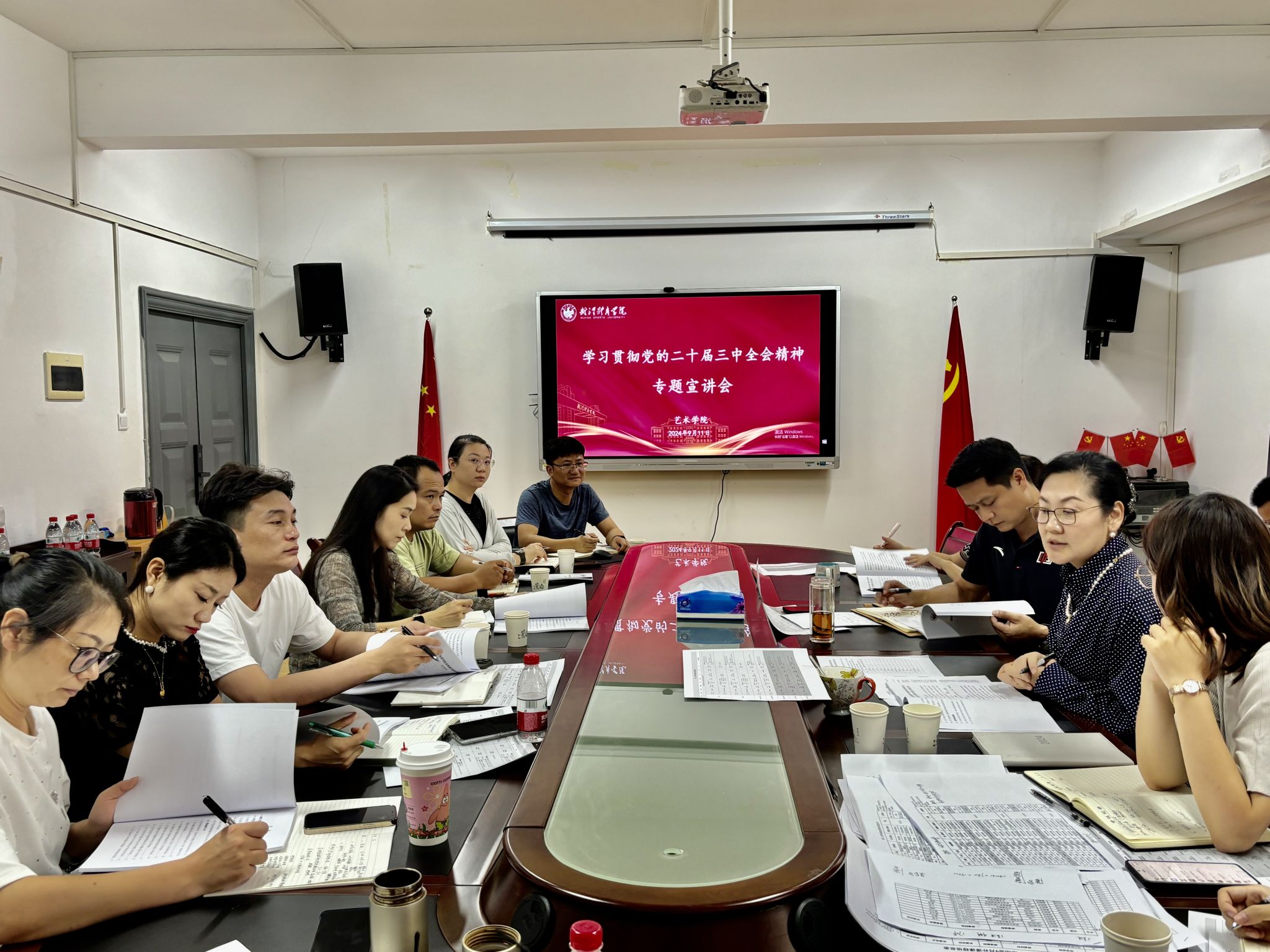 新闻网讯(通讯员黄水平)为深入学习贯彻党的二十届三中全会精神,根据学校相关文件安排部署,9月11日下午,艺术学院开展党的二十届三中全会精神专题宣讲会,院长李芳担任主讲人。学院班子成员、学院办公室负责人、各党支部书记、教研室主任、秘书及辅导员参加学习。