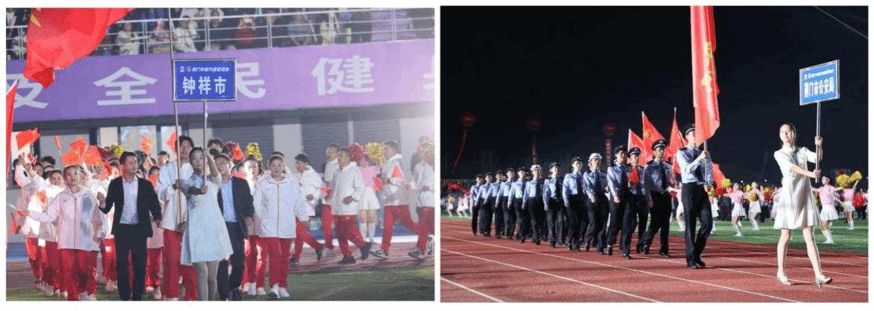 武体学子在本次运动会开闭幕式承担《相聚钟祥》《兰台赋》《莫愁遥》《铭刻荣光》、引导员等任务。