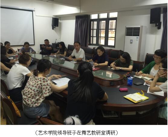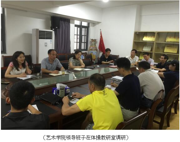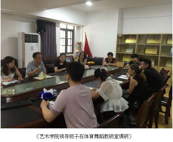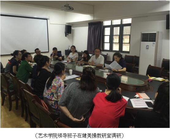 根据本学期学校工作安排和我院工作具体情况,为使我院体操教研室、舞艺教研室、体育舞蹈教研室、艺术学教研室和健美操教研室等五个教研室的教研活动进一步规范化、制度化,提高教育教学质量、促进工作发展的目的,艺术学院领导班子于7月2日、3日两天完成了对学院五个教研室的调研工作。