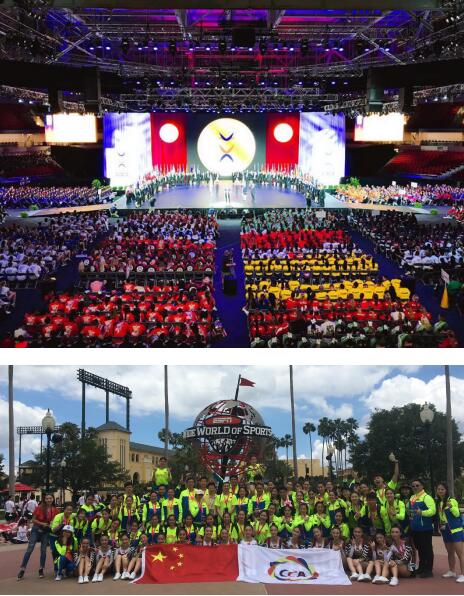 2018年4月25日-5月2日,世界啦啦操锦标赛与世界全明星啦啦操俱乐部比赛在美国佛罗里达洲奥兰多市开赛。武汉体育学院Cheer V啦啦队代表中国赴美征战,经过5天7场的激烈角逐,分别在集体花球、双人花球、集体爵士项目上获得优异成绩,代表中国登上啦啦操世界最高级别赛事的领奖台。