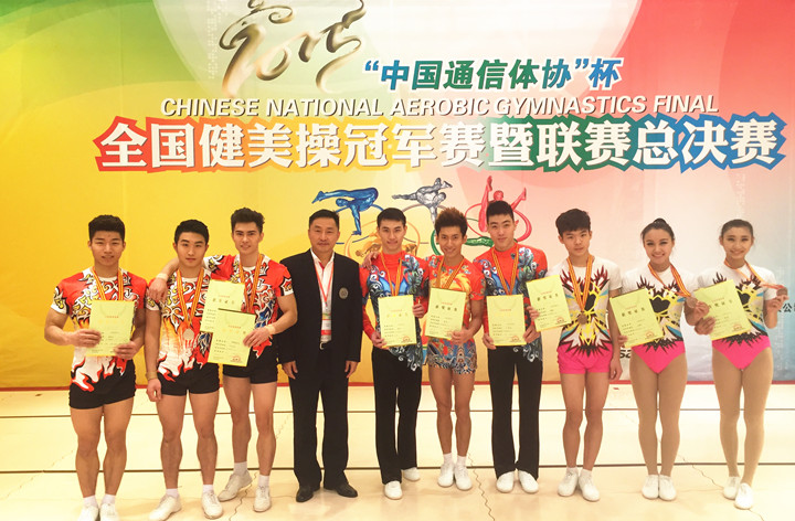 由国家体育总局体操运动管理中心、中国健美操协会主办、由中国通信体育协会承办、中国通信体育协会山东健美操培训基地、浩沙集团、泰安天乐城旅游恩华置业有限公司、济南开普体育健身有限公司协办的2015年全国健美操冠军赛于11月26日在山东省泰安市举行,本次赛事共有80多个单位800多名运动员参赛。我校健美操队在教练员杨小娜的带领下,在众多国家队队员中表现出色获得优异成绩。