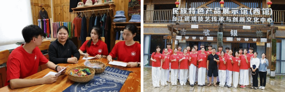 调研核心在于“见人见物见生活”。7月10日,支部成员来到施洞东西馆,怀着敬意访谈了两位重量级非遗传承人。在《苗绣》州级非遗传承人邰春花之女杨金慧讲述中感悟到飞针走线间的坚守与创新;在《苗族银饰锻造技艺》县级非传承人吴国武师傅的敲打锻造中体会到“千锤百炼成一器”的工匠精神。