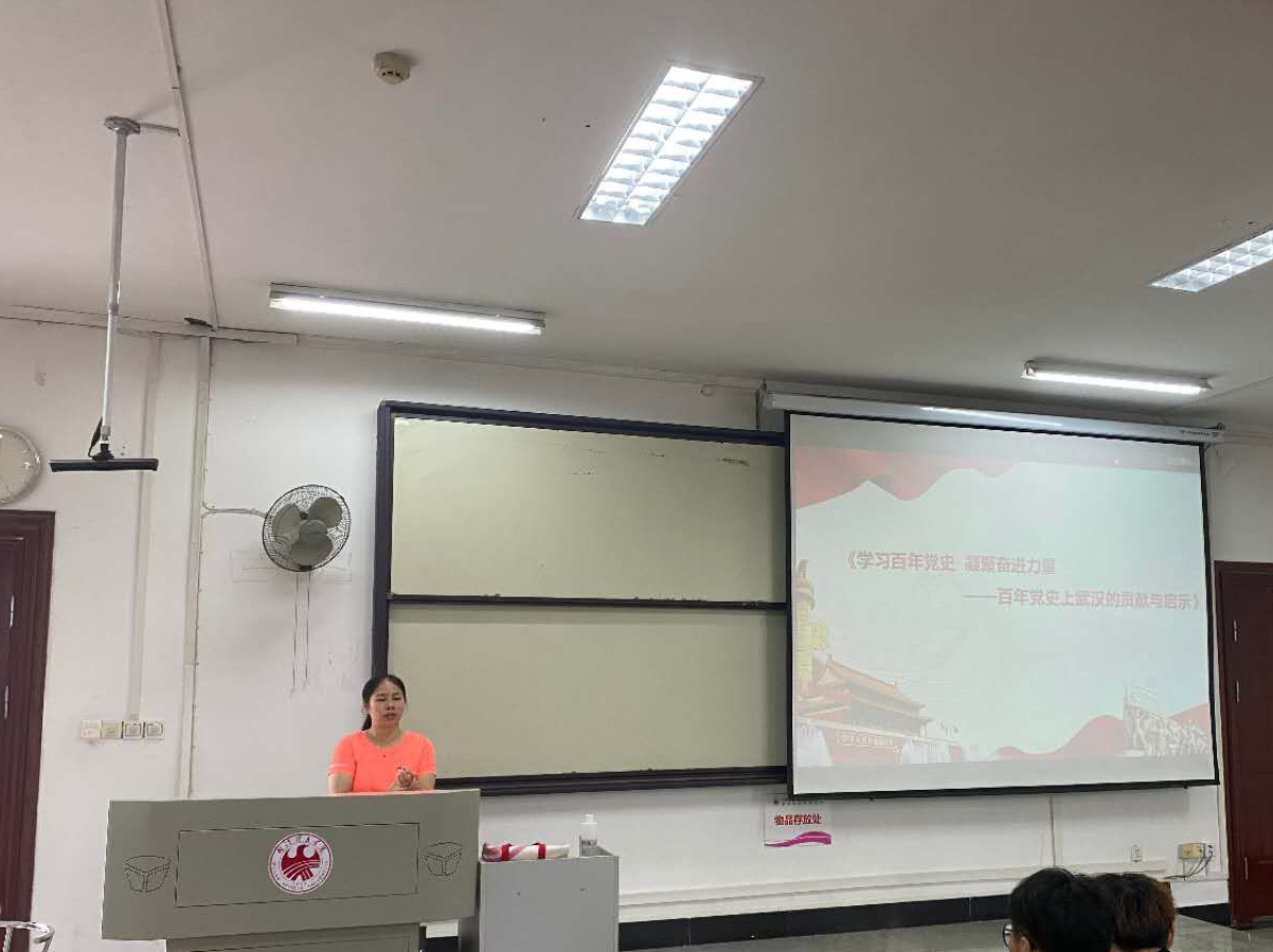 何宜臻同学以“学习百年党史 凝聚奋进力量”为主题,围绕“百年党史上的武汉贡献、武汉在百年党史中贡献的重要启示”两大方面,层次清晰、内容生动的讲述中国共产党一百年的非凡奋斗历程,而武汉作为中国近代洋务运动的发祥地之一,也是打响辛亥革命第一枪的所在地,有着光荣传统和辉煌事迹,诸多党的重要会议在武汉召开、重大决策在这里作出,并且在新中国成立后的经济社会发展和改革开放中占据重要地位,在抗疫阻击战和超大城市治理现代化中承载了重要使命,为党的百年历程作出了重要的贡献。