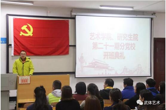 为加强党员教育管理要求深化党员教育,艺术学院与研究生院以及教职工分党校联合开展的第二十一期入党积极分子培训班于2017年10月14日在东教103教室举办了开班仪式。研究生院党总支书记徐伟宏、艺术学院党总支副书记付晓,研究生院辅导员朱雄、程洁、陈发胜以及艺术学院辅导员邱家良、向阳、任克、吴乔昊、温在泼等出席了此次开班典礼。典礼由艺术学院辅导员向阳主持。