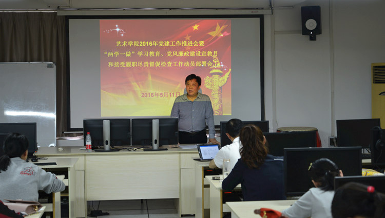 5月12日下午,艺术学院全体党员在艺术馆二楼音乐教室召开了2016年党建工作推进会暨“两学一做”学习教育、党风廉政建设宣教月和接受履职尽责督促检查工作动员部署会。会议由党总支副书记付晓同志主持。
