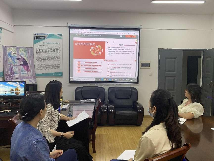《中华人民共和国反有组织犯罪法》已由第十三届全国人民代表大会常务委员会第三十二次会议表决通过,自2022年5月1日起施行。支部书记胡曦带领大家从《中华人民共和国反有组织犯罪法》出台背景和重大意义到法律亮点和适用范围进行了着重学习,并对重点条款进行分析讨论、细致解读,深入了解法条内涵。