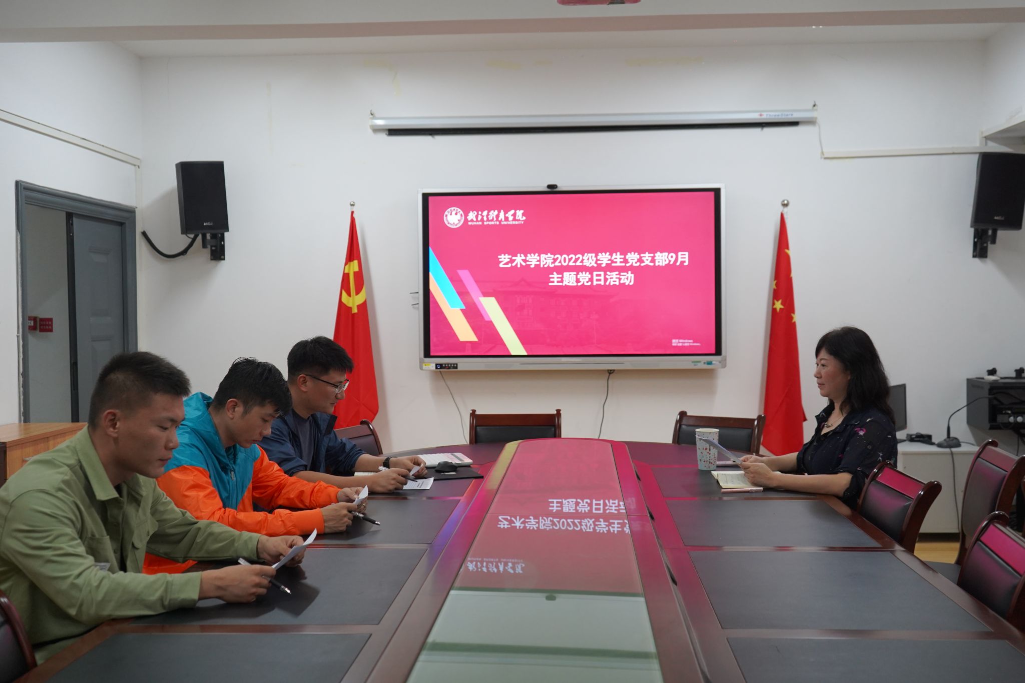 新闻网讯(通讯员黄水平)9月26日下午,艺术学院2022级本科生党支部在学院会议室开展以“慎终如始,推动主题教育见行见效;踔厉奋进,献礼七秩芳华赓续荣光”为主题的支部主题党日活动。艺术学院党委副书记兼副院长赵露娜参加了支部学习和讨论,会议由支部书记黄水平主持。