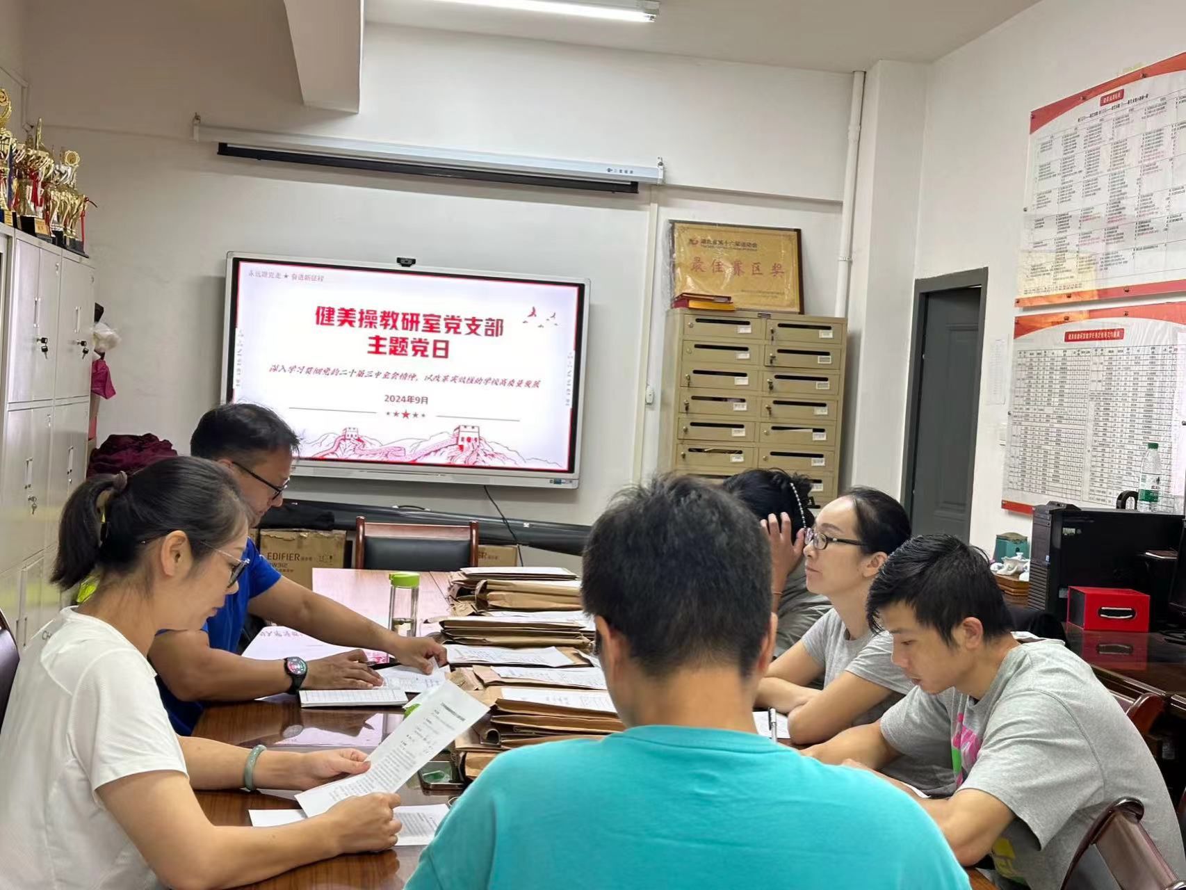 新闻网讯(通讯员赵晏瑜)2024年9月18日,艺术学院健美操教研室党支部开展了“深入学习贯彻党的二十届三中全会精神,以改革实效推动学校高质量发展”为主题的九月主题党日活动。会议由支部书记王操惠主持,支部全体党员参加。
