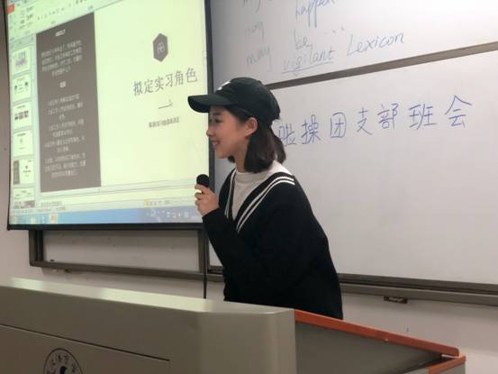 11月16日下午,啦啦操团支部在东教学楼组织开展班会,共分为“对未来的期望”、“唇枪舌战话就业”与“模拟招聘会”三个环节,旨在提高同学们对未来的适应能力和就业能力。