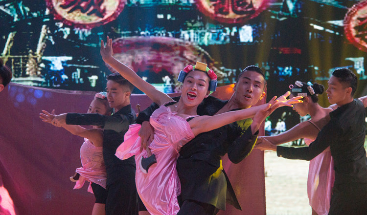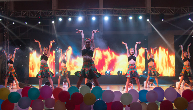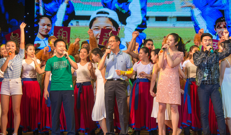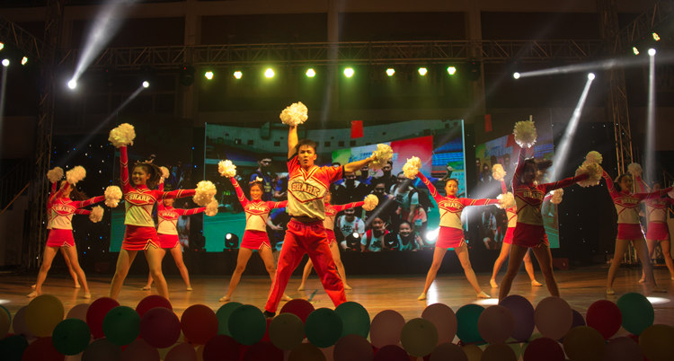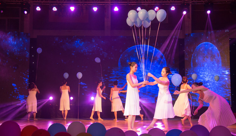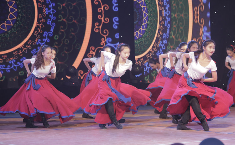 随后,晚会在民族舞《希格希日》的优美舞姿中拉开帷幕。舞蹈学专业的同学们翩翩起舞,舞姿或柔婉袅娜,如仙鹤展翅,如柳枝拂水;或刚劲跌宕,活泼潇洒。明朗激昂与细腻委婉的结合,含蓄深沉的民族个性体现其中。由体育舞蹈3组带来的《青春校园》、健美操8班的同学们表演的《心中的奥运梦》,体育舞蹈专项组表演的《功夫》《收留余香》将晚会推上一个又一个高潮。来自新闻传播学院的小品《爱的代驾》笑点频出,让现场的观众捧腹。最后一首歌曲《相亲相爱一家人》由艺术学院院长魏旭波、新生辅导员任克、吴乔昊亲自上阵,与2015级的同学们同台献艺,赢得了全场热烈的掌声,为本次晚会划上了圆满的句号。