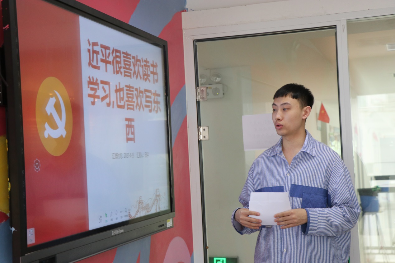 第五位分享人田宇同学带来《近平很喜欢读书学习,也喜欢写东西》。他说道:在巨大的劳动强度下,习近平总书记每天晚上依然点着煤油灯坚持学习和思考,广泛涉猎政治、军事、文学各方面的书籍。窑洞里,他给乡亲们讲书里的故事,讲大山外的北京,利用农闲时间教乡亲们认字,他在书中汲取力量,在书中看世界,用书本寻知己。他认为在电子书甚嚣尘上的时代,纸质书仍然是最好的选择。因为真正的阅读需要你的全情投入,之后才会有更深层次的吸收和感悟。