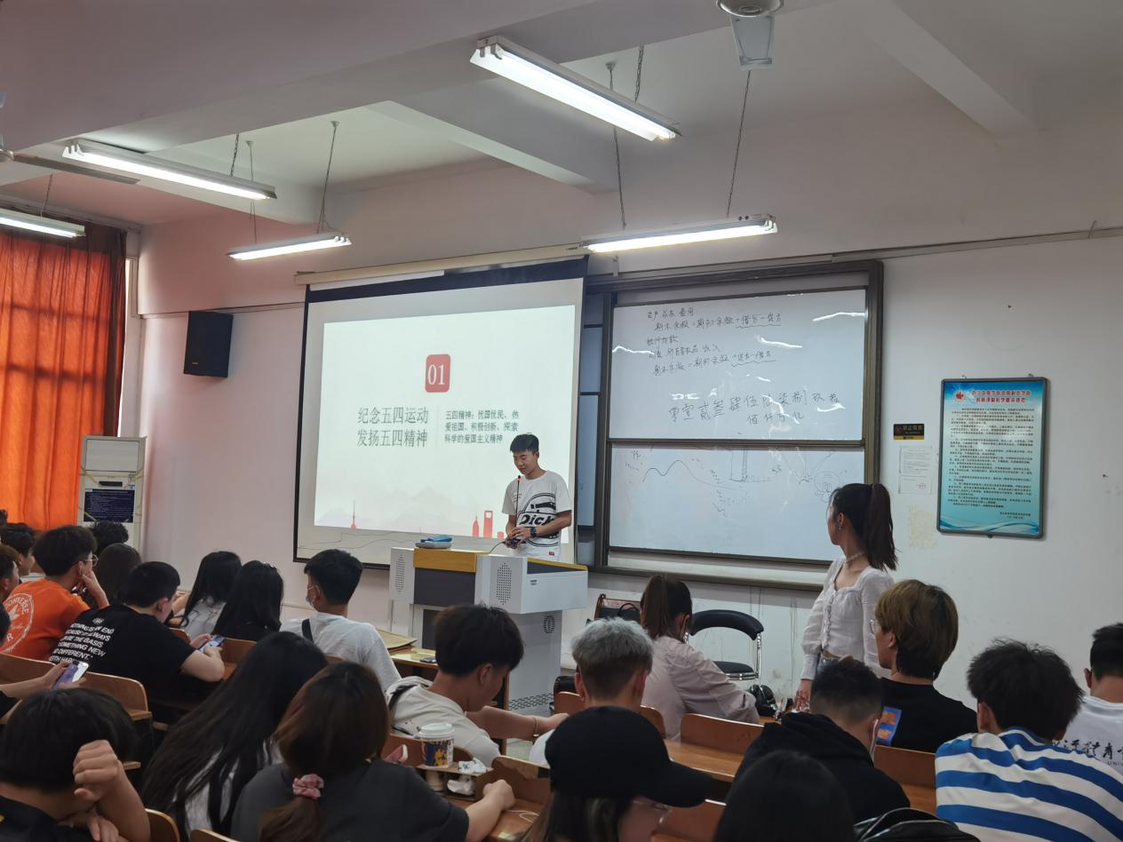 会议从“五四运动”的历史背景与起因、五四精神与文化和如何弘扬五四精神三方面来展开讲述。首先由张浩同学向我们介绍了忧国忧民、热爱祖国、积极创新、探索科学的爱国主义精神,并用实际案例向我们一一阐述,让我们更加形象的了解到历史事实,再从五四运动的核心精神进行阐述,点明了作为新时代的学生,应该对五四精神有自己新的理解,赋予其新的时代内涵,要为振兴中华民族而努力奋斗。