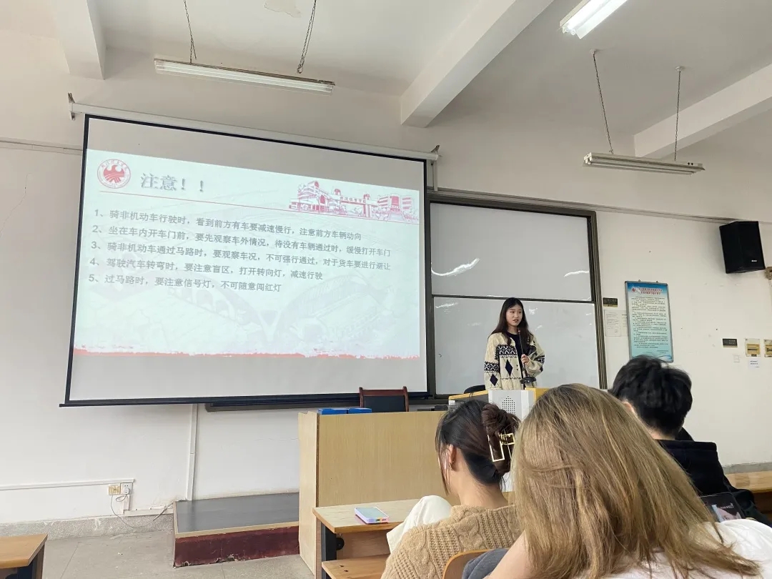 本次班会由20级舞蹈学专业的刘卓雅同学宣讲。开始点明了交通事故的死亡人数,紧接着从三个交通事故的视频让同学们生动形象的感受到遵守交通规则的重要性,意识到提高安全意识的必要性。