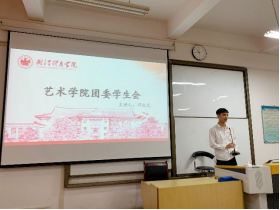 分享会开始,艺术学院第二十届主席团执行主席邓兆龙同学主要围绕“团委学生会构造和基本内容”以及“学生会的工作和内容”介绍了艺术学院团委学生会。他提到:“其实学生会就是一个大家庭,我们一起思考,一起进步,也有各自的分工,让我们这个大家庭变得更好,走的更远。”