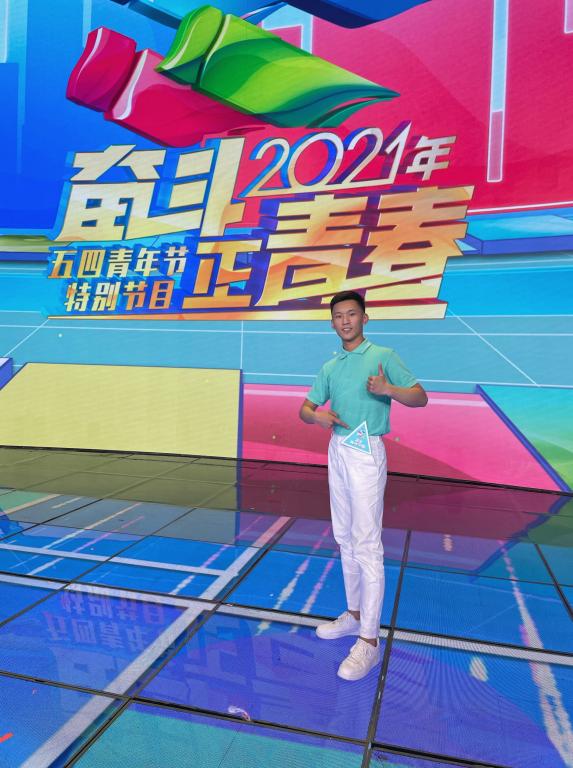 近日,由中共中央宣传部、教育部、团中央主办、中央广播电视总台承办的《奋斗正青春——2021五四青年节特别节目》于5月4日晚八点在央视一套和三套播出。艺术学院2018级体育舞蹈专项学生邹尚恒代表武汉体育学院与各高校代表参演开场歌舞《奔跑的青春》《青春》《书写青春华章》《英雄赞歌》《把未来点亮》以及尾声《百年》等6个节目。