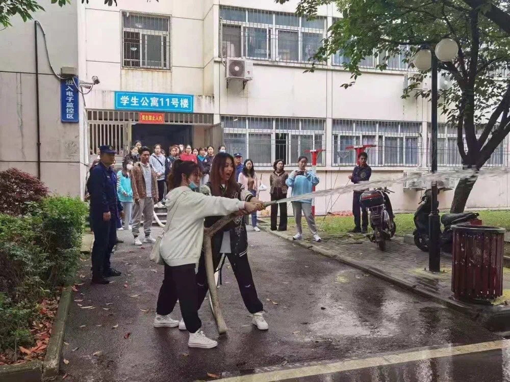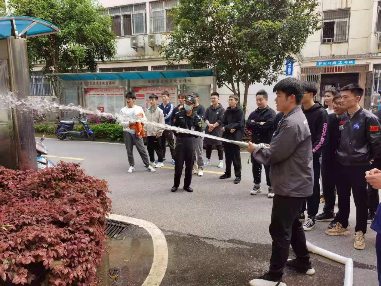 随后消防救援人员带领同学们到了消防栓处,向同学们示范、讲解了消防水袋、干粉灭火器的使用方法,并让同学们进行实践使用,让同学们掌握、了解这些消防器材设施,增强了同学们应对突发安全事件的能力。