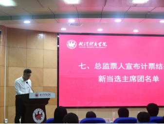大会第六项议程,总监票人艺术学院团委副书记温在泼宣读计票结果及新当选主席团名单,任选任倩楠、王津隆、冯懿斐,当选为艺术学院第一届研究生会主席团成员。