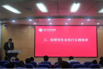 大会第二项议程,艺术学院研究生会执行主席霍贤廷致辞。他表示,研究生会应该在学校发展中起到积极作用,希望同学们逐梦青春、不负韶华。同时他对我校研究生会组织提出三点希望:一、端正思想认识;二、以身作则,严于律己,学生干部要淬炼品格、真学实干,更好地团结带领广大学生坚定理想信念,爱国、立志、求真、力行;三、提高工作能力,做好服务意识,有过硬的本领。