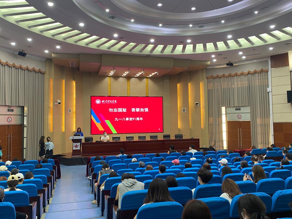 为弘扬爱国主义,警示大学生勿忘国耻、以史为鉴,艺术学院2021级二部团总支在辅导员姬鑫磊的带领下于“九一八”事变91周年当天在东教学楼第三报告厅开展了主题班会。