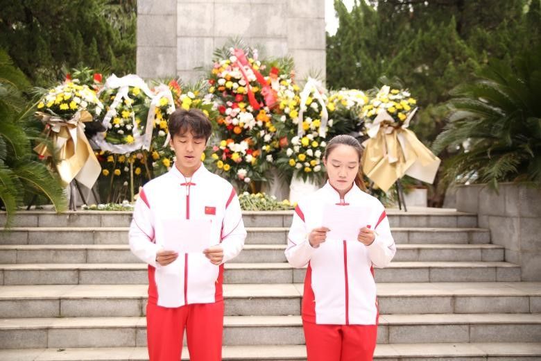 学生代表诵读诗歌,表达出了革命先烈一腔热血为国捐躯的忠烈爱国之情。