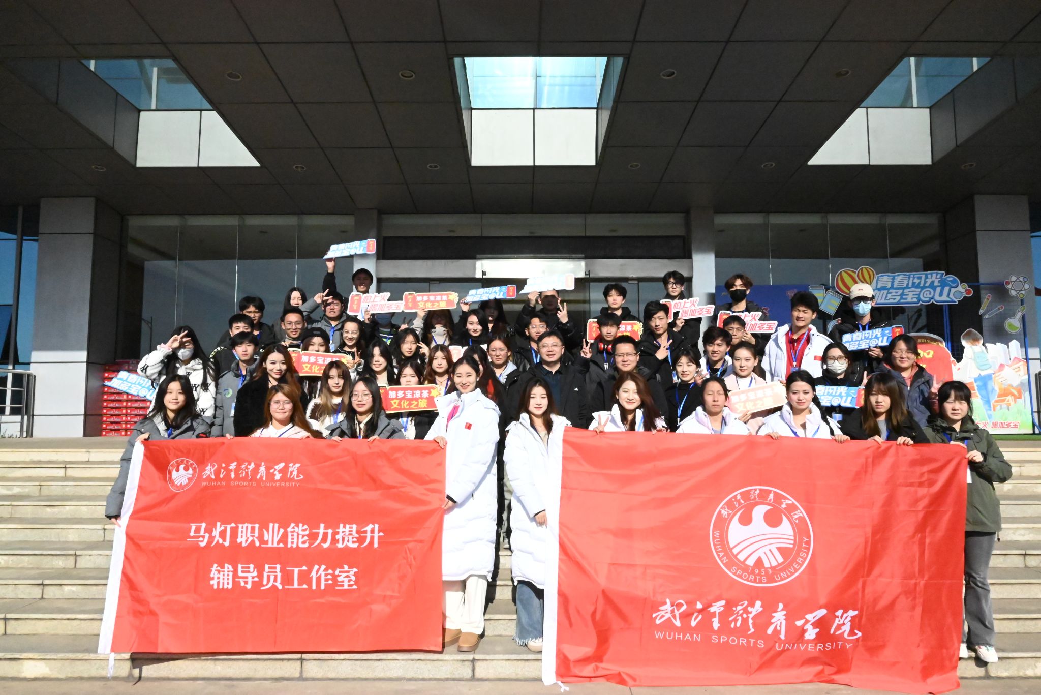 新闻网讯(通讯员毛佳仪)为深化校企合作,推动协同育人成果转化,着力提升学生的社会实践能力和岗位适应能力,拓宽就业视野。12月7日上午,武汉体育学院教育发展基金会秘书长刘远,辅导员姬鑫磊、关斯琪、吴莎一行带领我校艺术学院、新闻传播学院、运动医学院等50余名学生到武汉加多宝饮料有限公司参观学习,本次参观由学校教育发展基金会组织,武汉体育学院马灯职业能力提升辅导员工作室负责筹备对接。