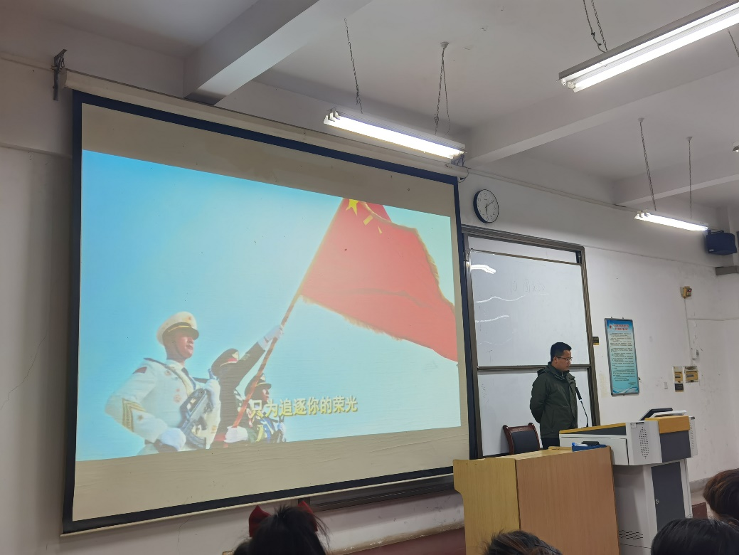本次入伍启蒙教育由辅导员姬鑫磊老师主持,姬老师首先带领同学们观看了每一秒都热血的征兵宣传片《热血青春从军报国》。